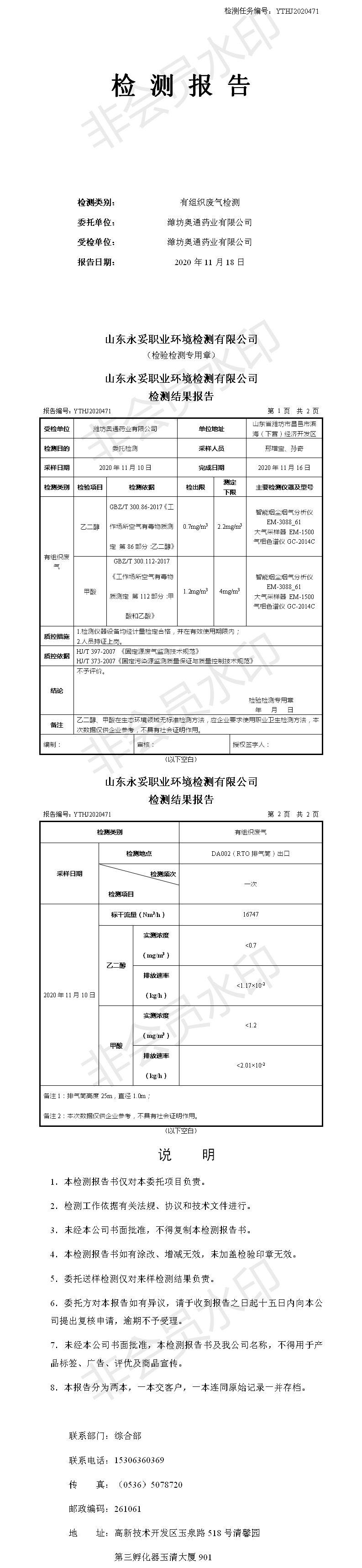 濰坊奧通藥業有限公司十一月環境檢測報告