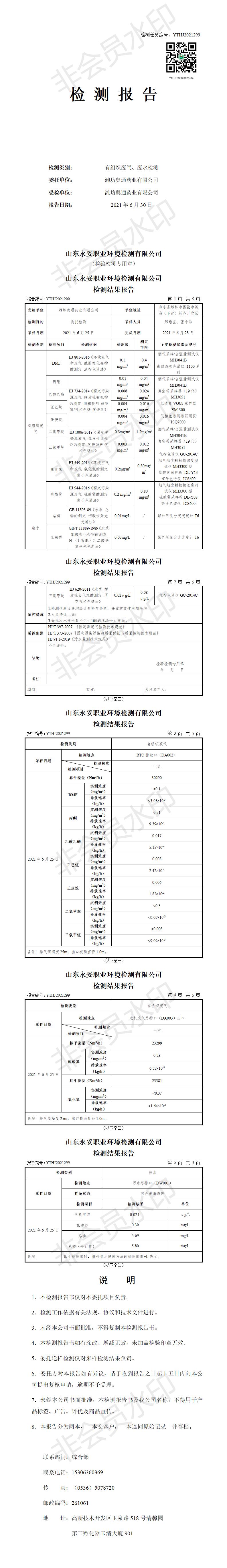 濰坊奧通藥業(yè)有限公司六月環(huán)境檢測報告