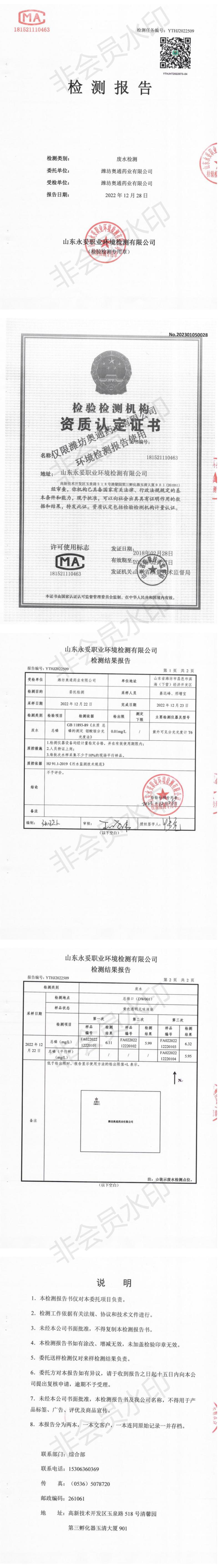 濰坊奧通藥業(yè)有限公司十二月環(huán)境檢測報(bào)告