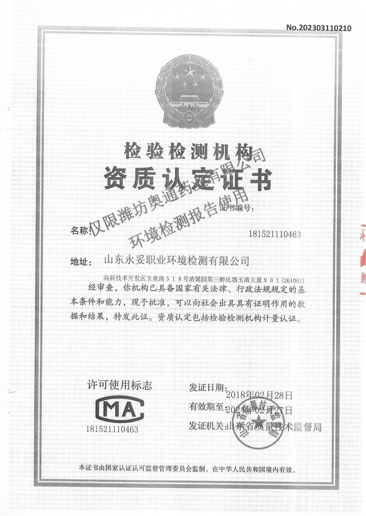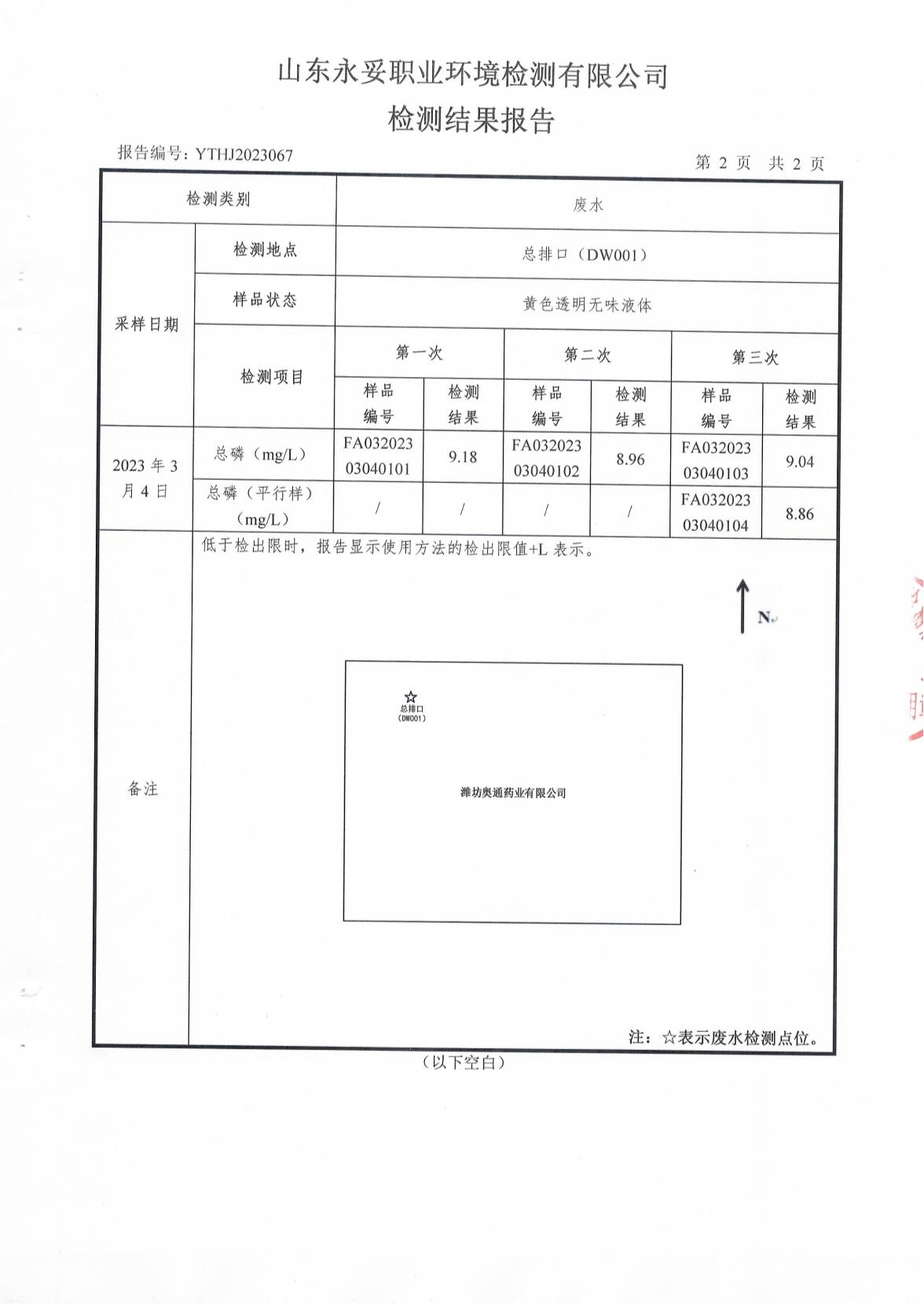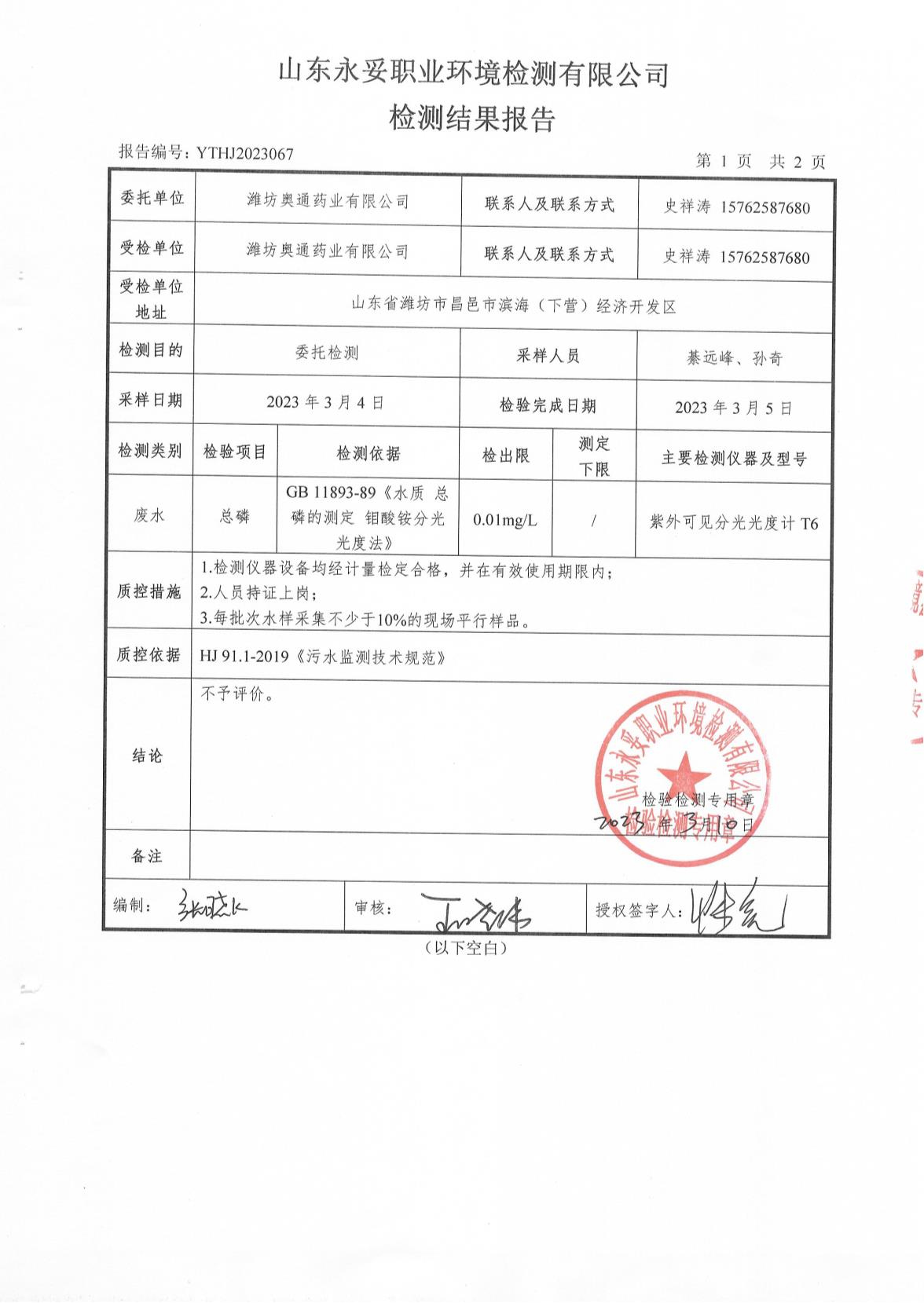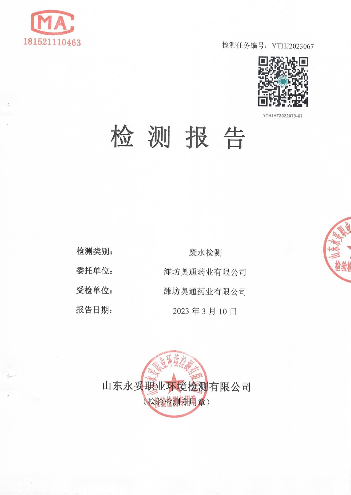 濰坊奧通藥業有限公司三月環境檢測報告